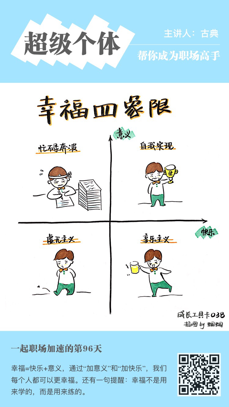 一旦我们理解了4个类型,我们就可以很快地定位自己,并且给自己找到更幸福的路径。你是哪个类型的呢?