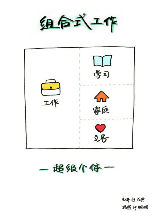 组合式工作很好地避免了一般的自由职业者最大的几个问题——缺乏归宿感、与社会不接触、工作缺乏意义感、以及没有办法持续地学习。