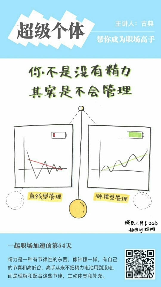 精力其实是一种节律性的东西,春夏秋冬,白天黑夜,像钟摆一样,有自己的节奏和高低谷。高手从来不把精力电池用到没电,而是理解和配合这些节律,主动进行休息和补充。